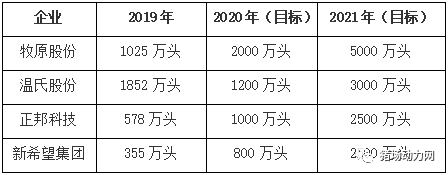 牧原股份今年年底产能将达到4000-5000万头,今年出栏目标为1750-2000万头;正邦科技今年四季度育肥产能将达到2500万头规模,今年出栏目标中位数为1000万头;温氏明年的出栏目标是3000万,今年则是1200万。