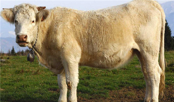 2.外貌特征。夏洛来牛体型大,骨骼粗壮,全身肌肉发达,被毛为乳白色。头小而短,体躯长,腰部宽厚,臀部肌肉丰满,并向后突出,常见双肌牛,腰部衔接处略凹陷。
